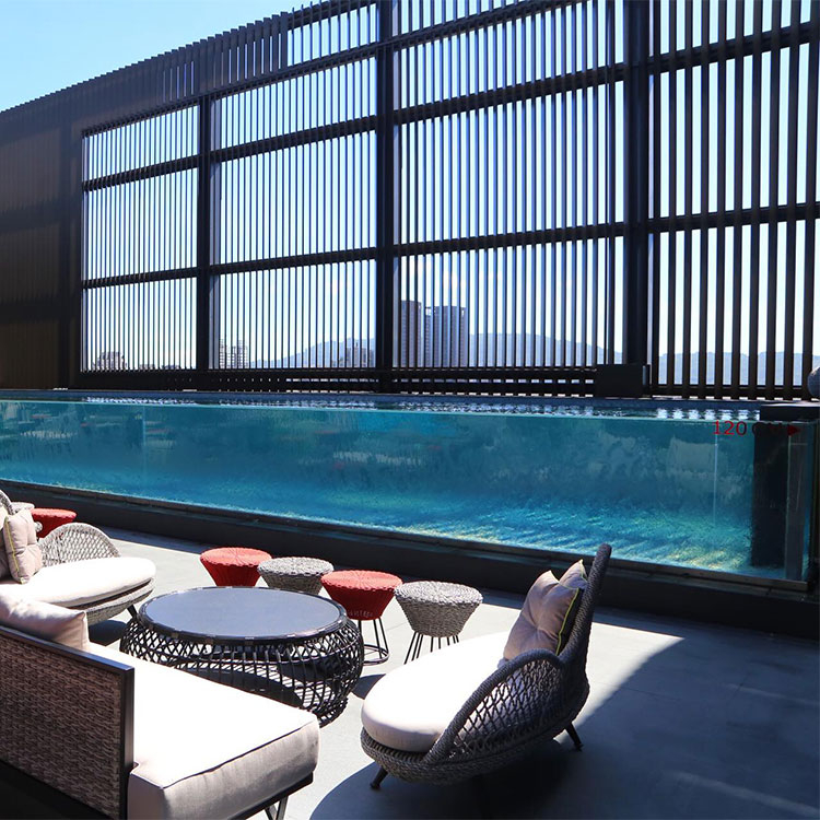 Акриловый бассейн Leyu изготовлен из Китая высокого уровня. акриловые панелиОкно бассейна прочное и имеет хорошую прозрачность (93%).Мы гарантируем 30 лет отсутствия пожелтения на наш акриловый бассейн.